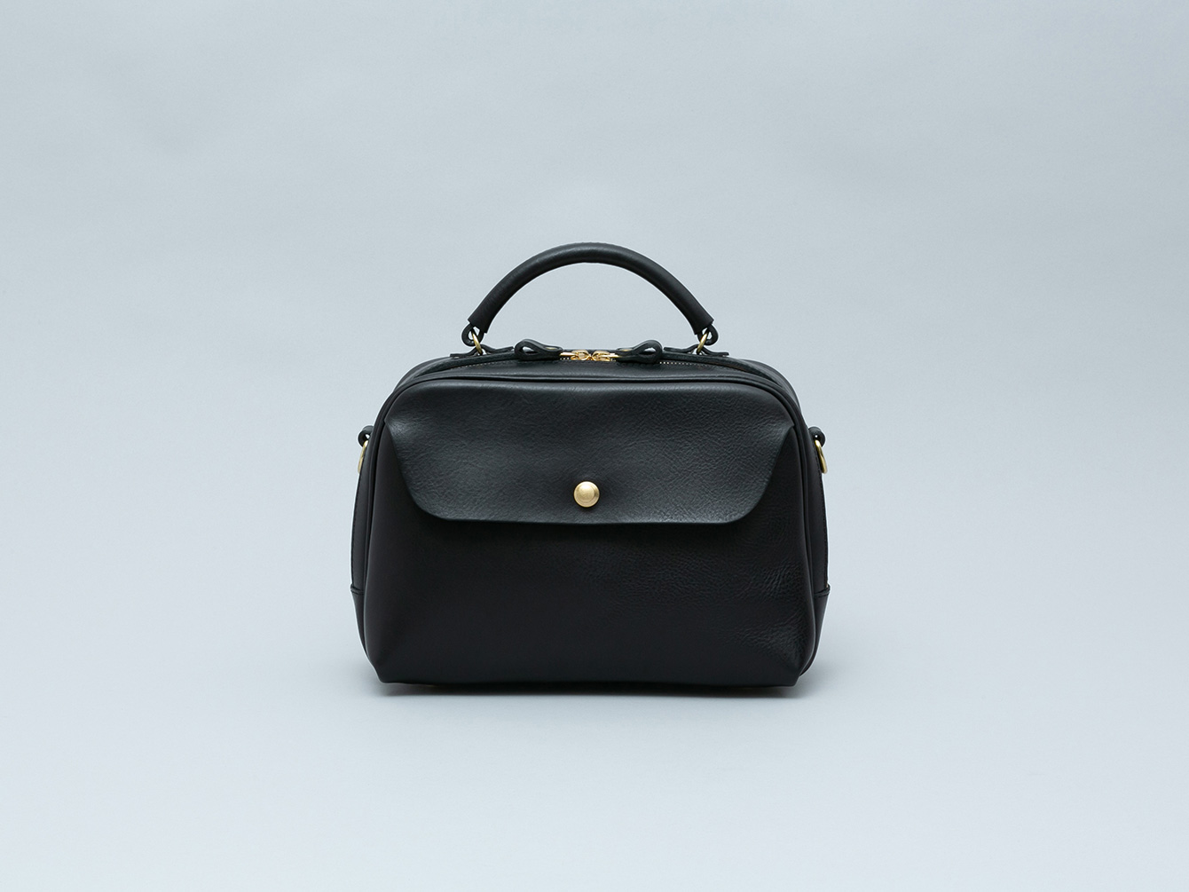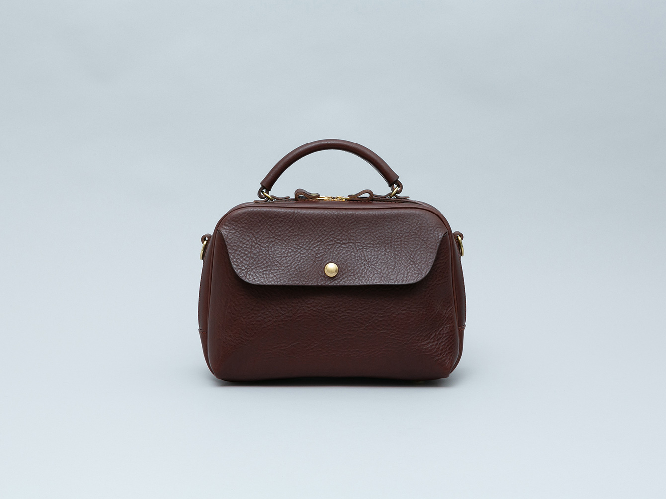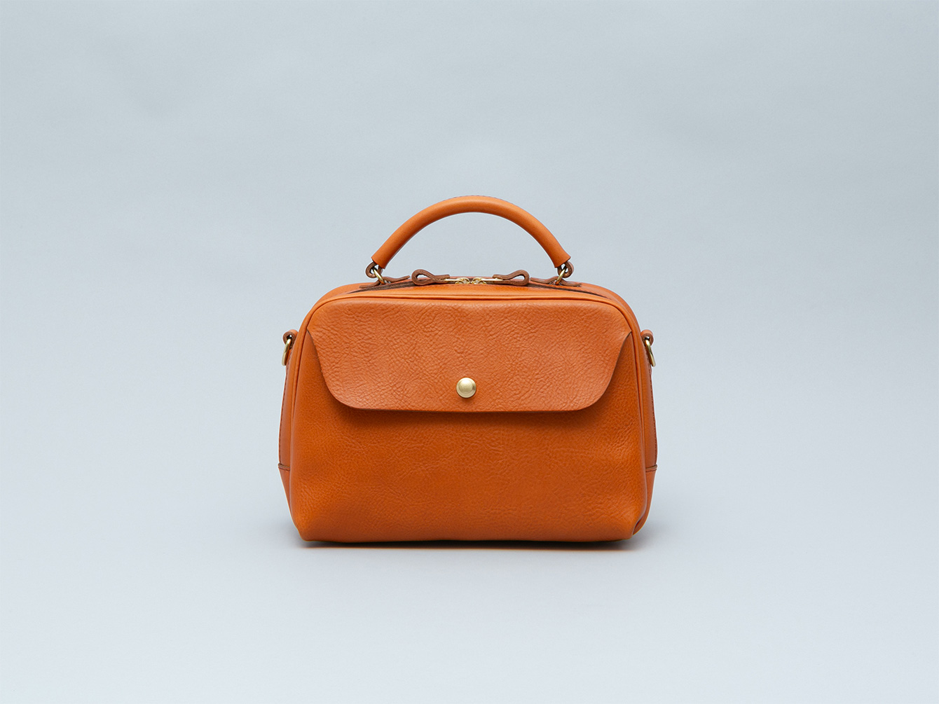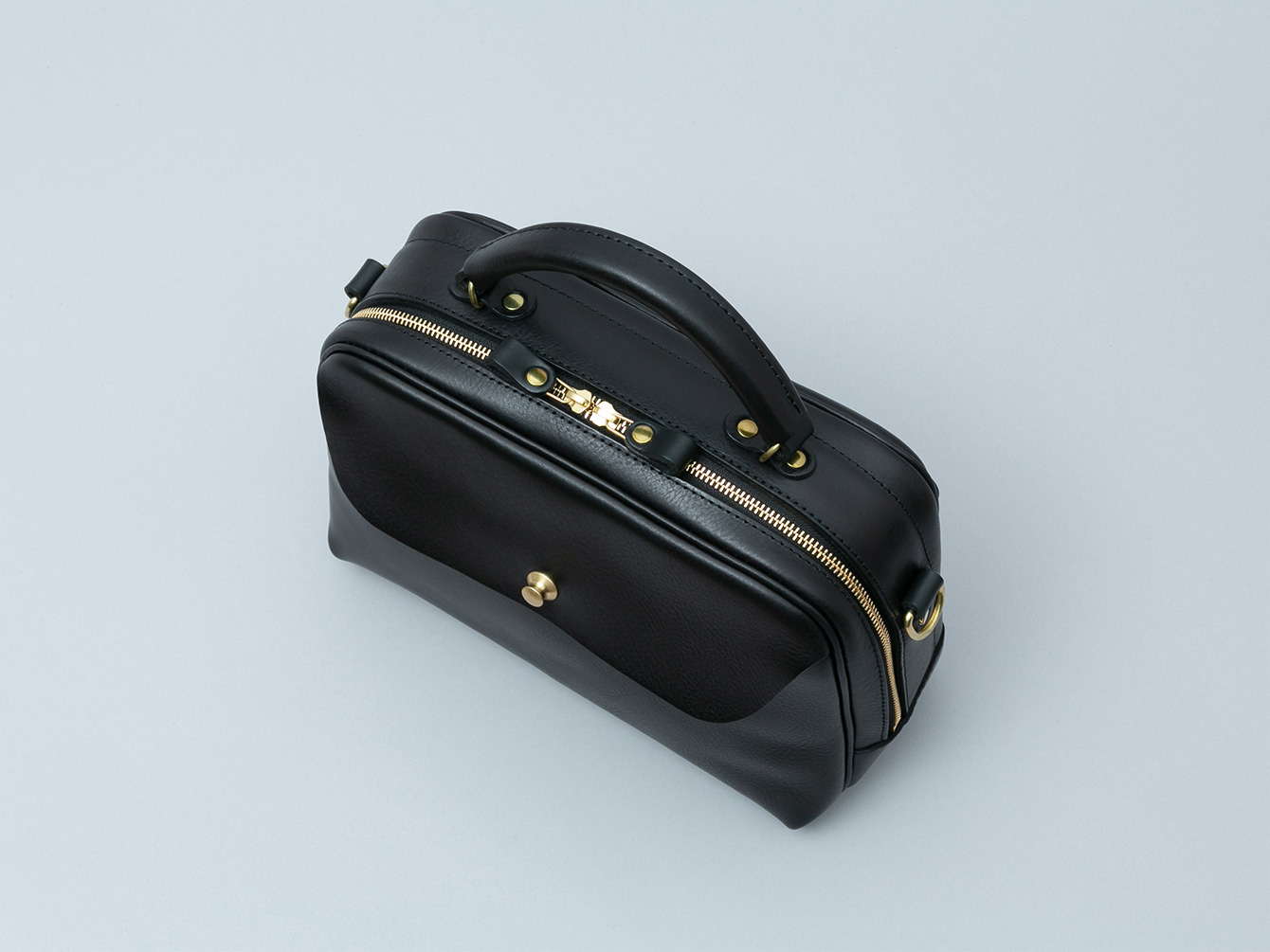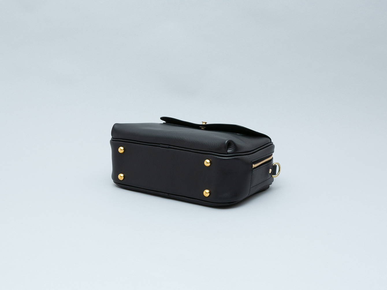 着脱式のショルダーストラップを付属しているため、手持ちや肩掛けなどシーンに応じてお使いいただけます。また、床に置いた時の安定感や型崩れ・底擦れ防止のため、標準で底板と底鋲を4発お付けしています。